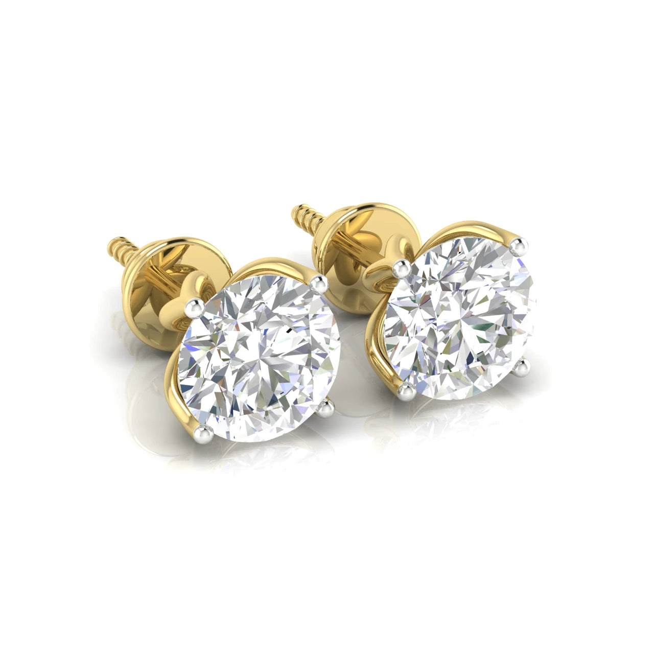 4 Carat IGI Certified Brilliant Round Diamond Earring Yellow Gold Studs
