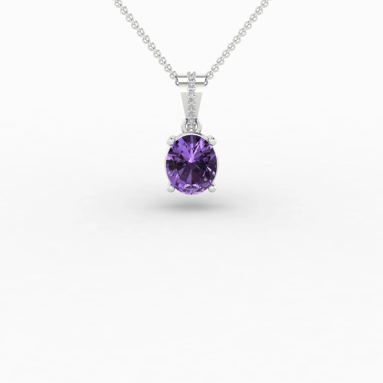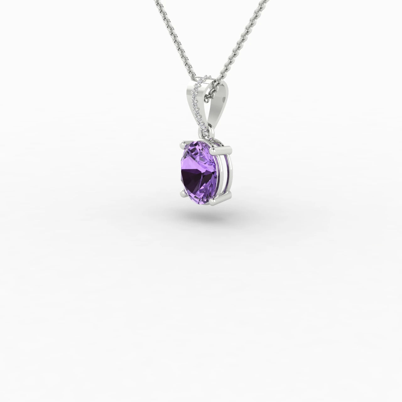 Oval Amethyst Solitaire Necklace 14K White Gold