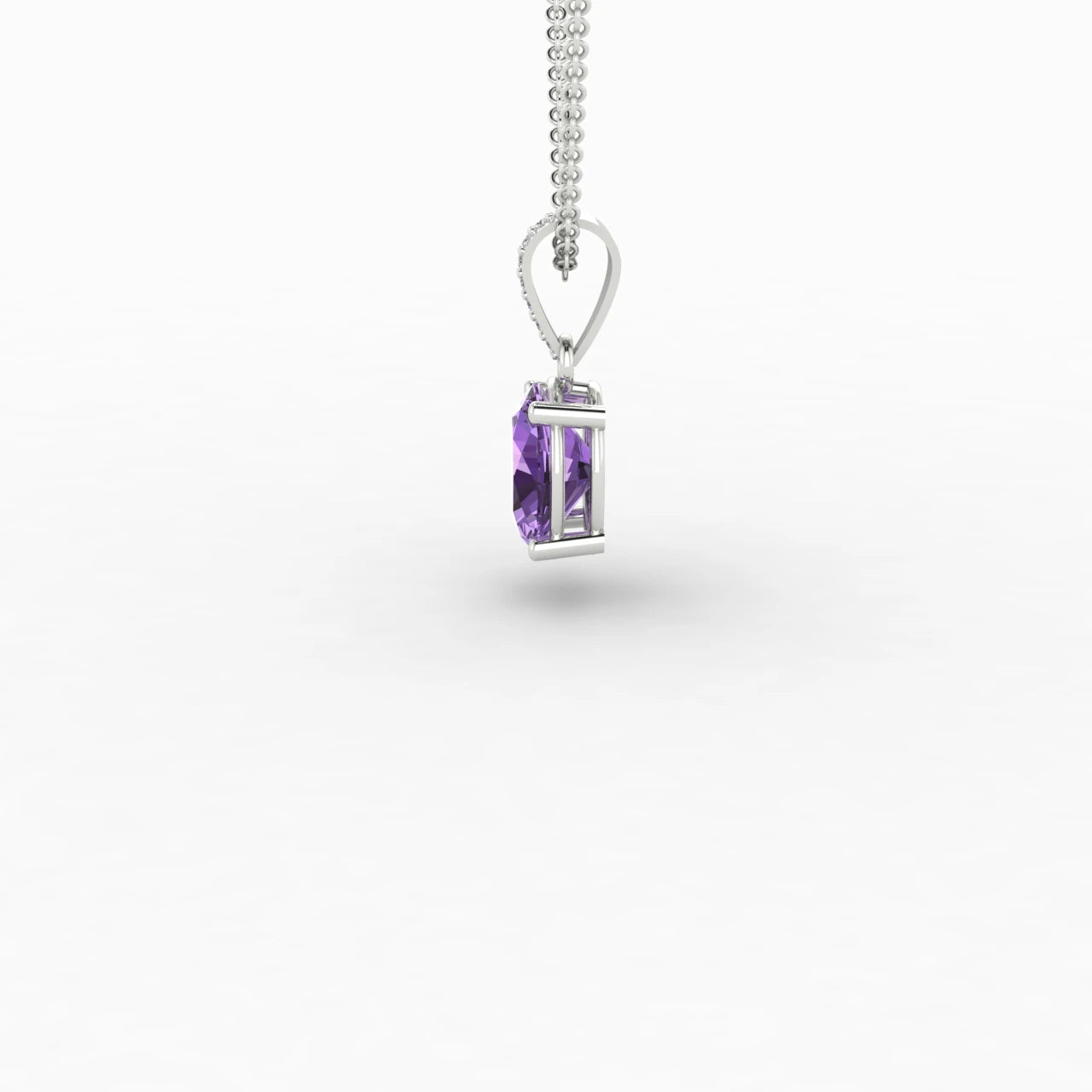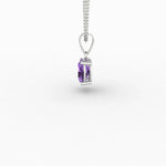 This elegant Amethyst Pendant Necklace features a rich, deep purple amethyst secured in a classic 4-prong setting, beautifully complemented by sparkling diamonds on the hook. Crafted in 14K white gold, this timeless piece adds a touch of luxury and color to any look.