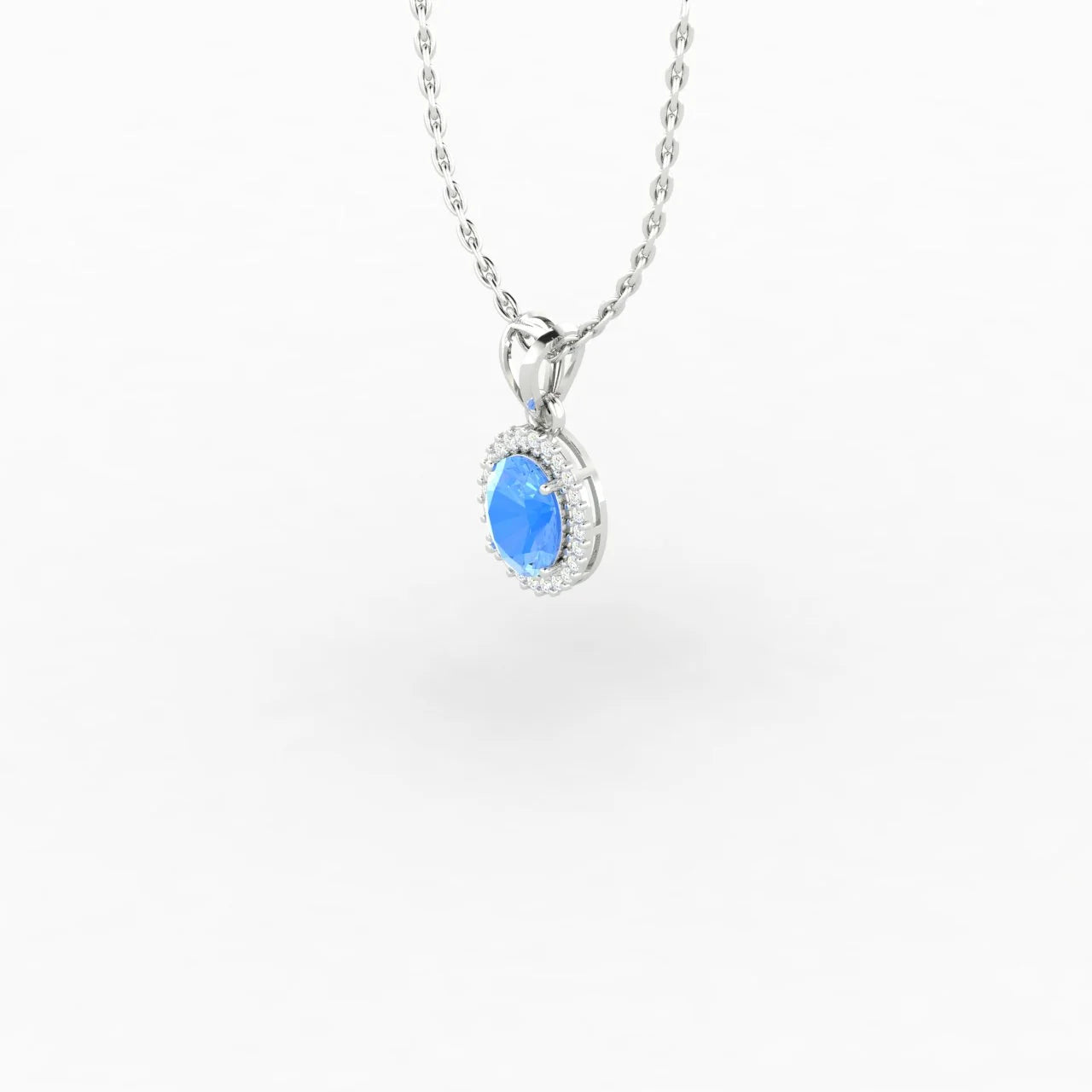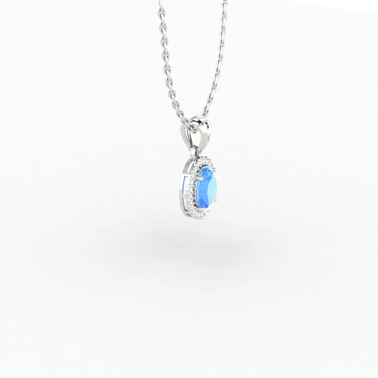 Oval Cut Aquamarine Halo 1 Carat Lab Diamond Necklace