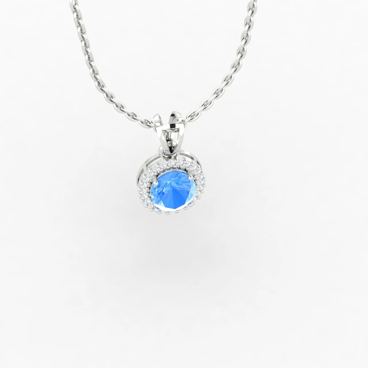 This graceful Aquamarine Pendant Necklace features a serene, ocean-blue aquamarine gemstone encircled by a sparkling diamond halo. Set in luminous 14K white gold, the pendant exudes a soft elegance and timeless charm — a perfect piece to add a touch of tranquility and sophistication to any ensemble.