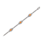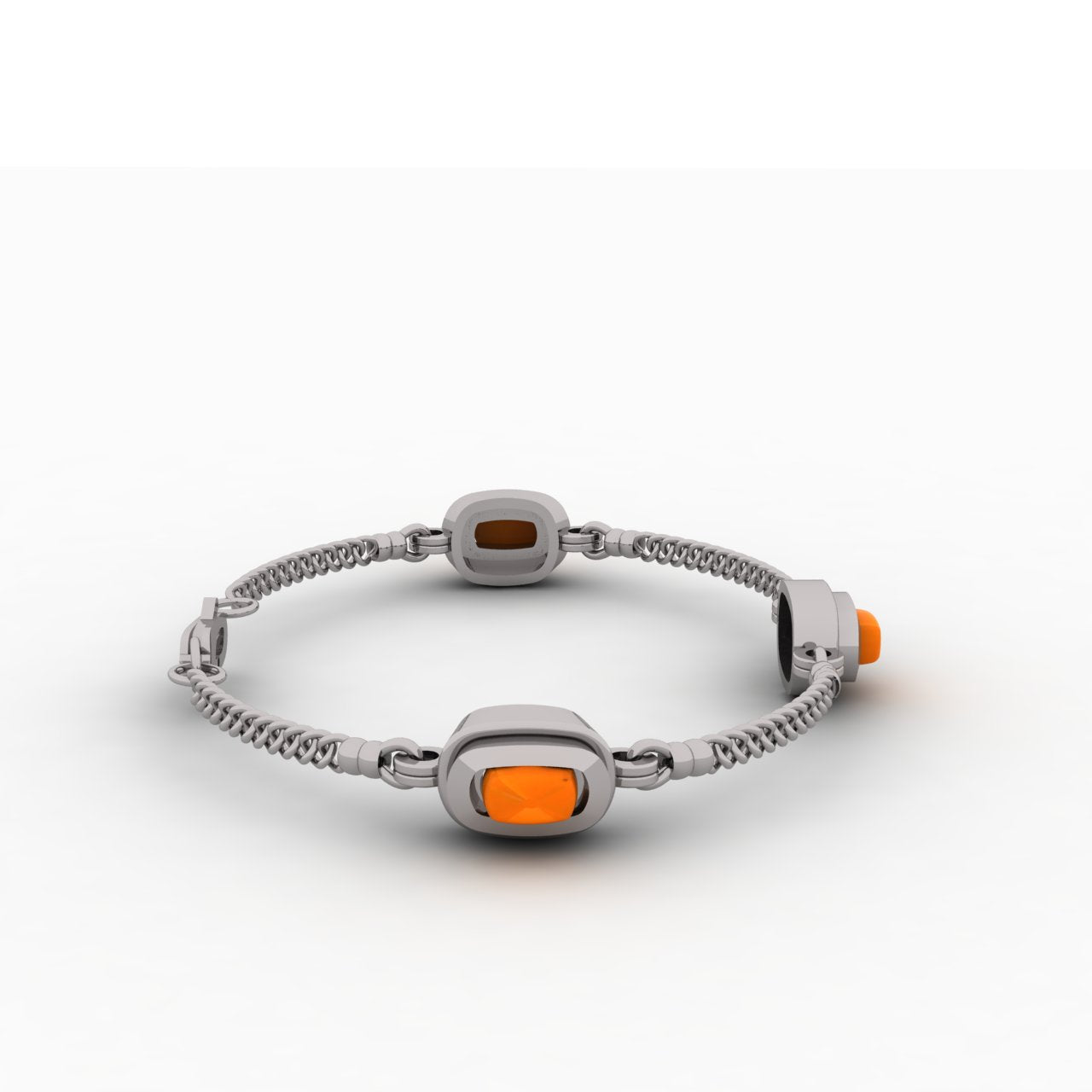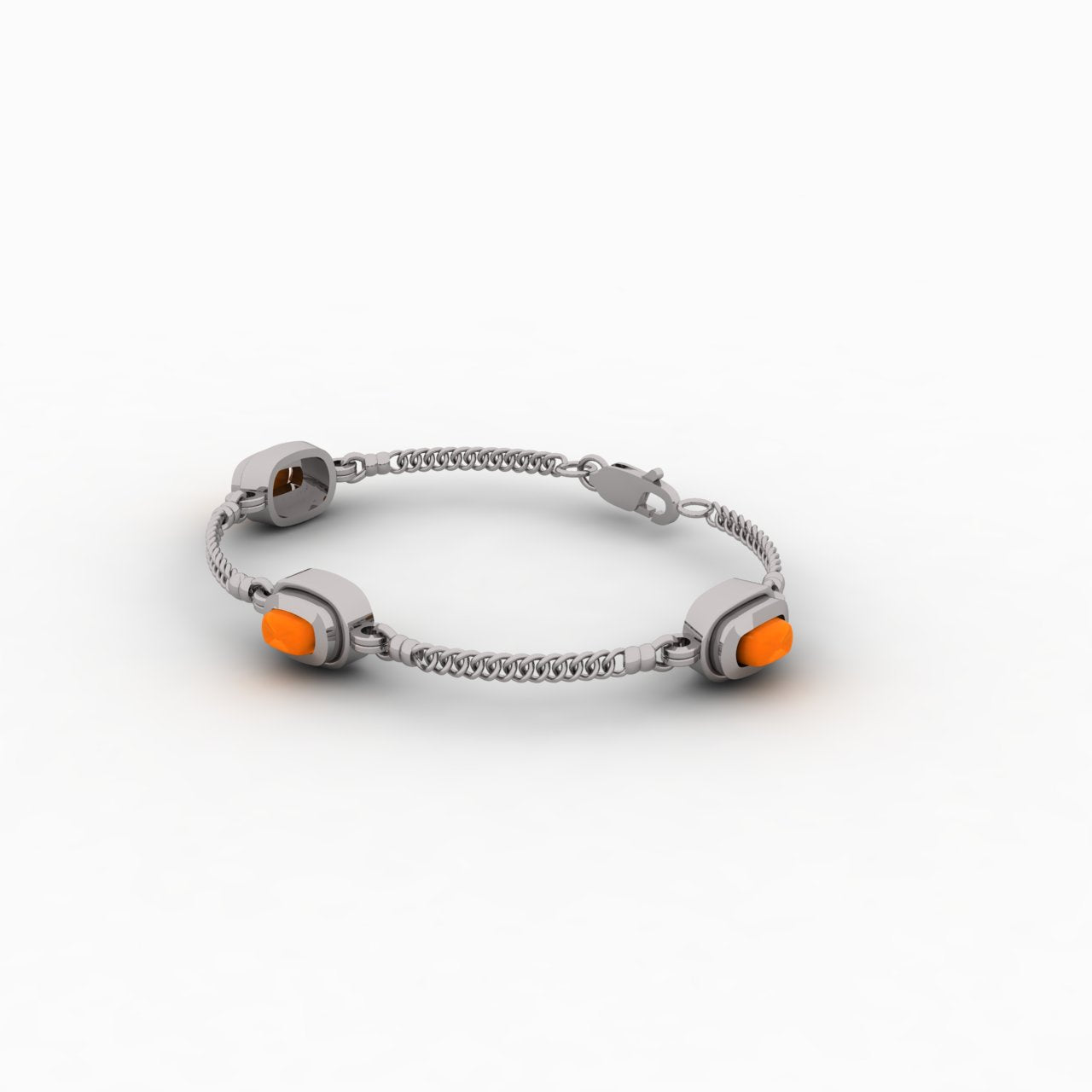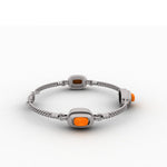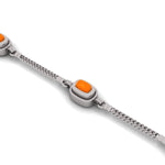 Ignite your style with this captivating chain bracelet, where three radiant orange rectangular stones blaze like embers against a backdrop of cool, polished silver. Each stone is precisely framed in sleek, silver-toned settings and evenly spaced along a bold interlocking link chain, creating a rhythm of color and shine.