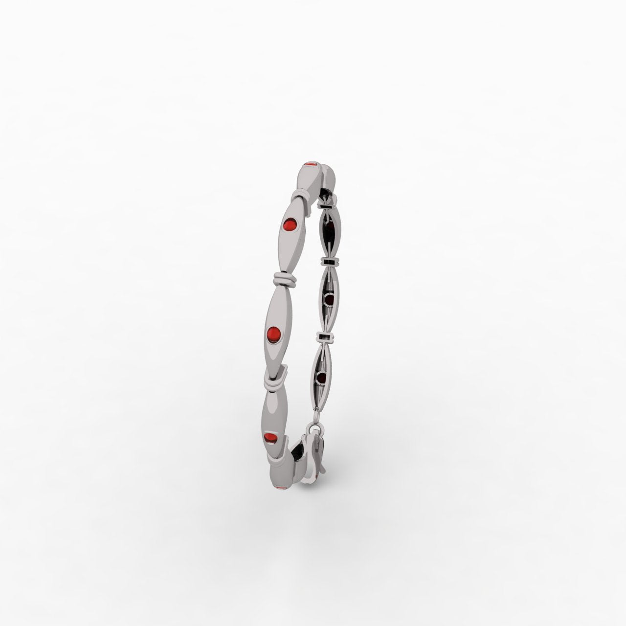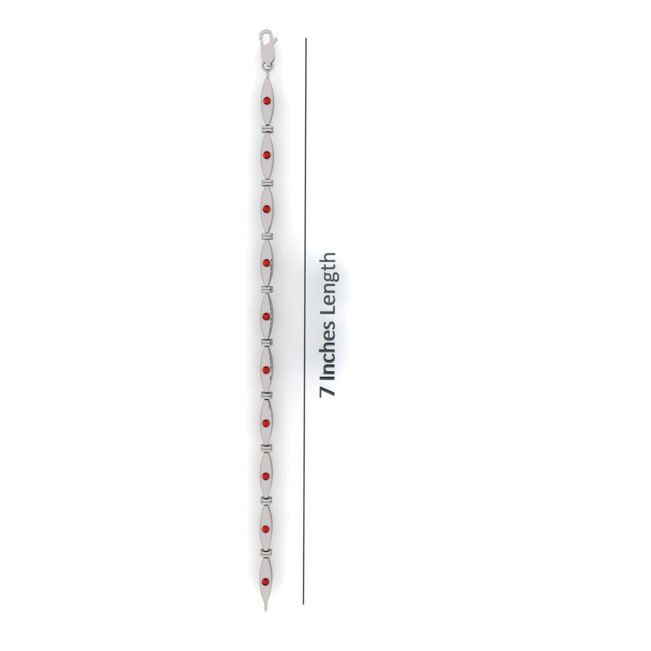 Sleek and minimal, this sterling silver bracelet features a modern link design accented with subtle round rubies. Secured with a lobster clasp, it’s the perfect blend of understated elegance and refined color.
