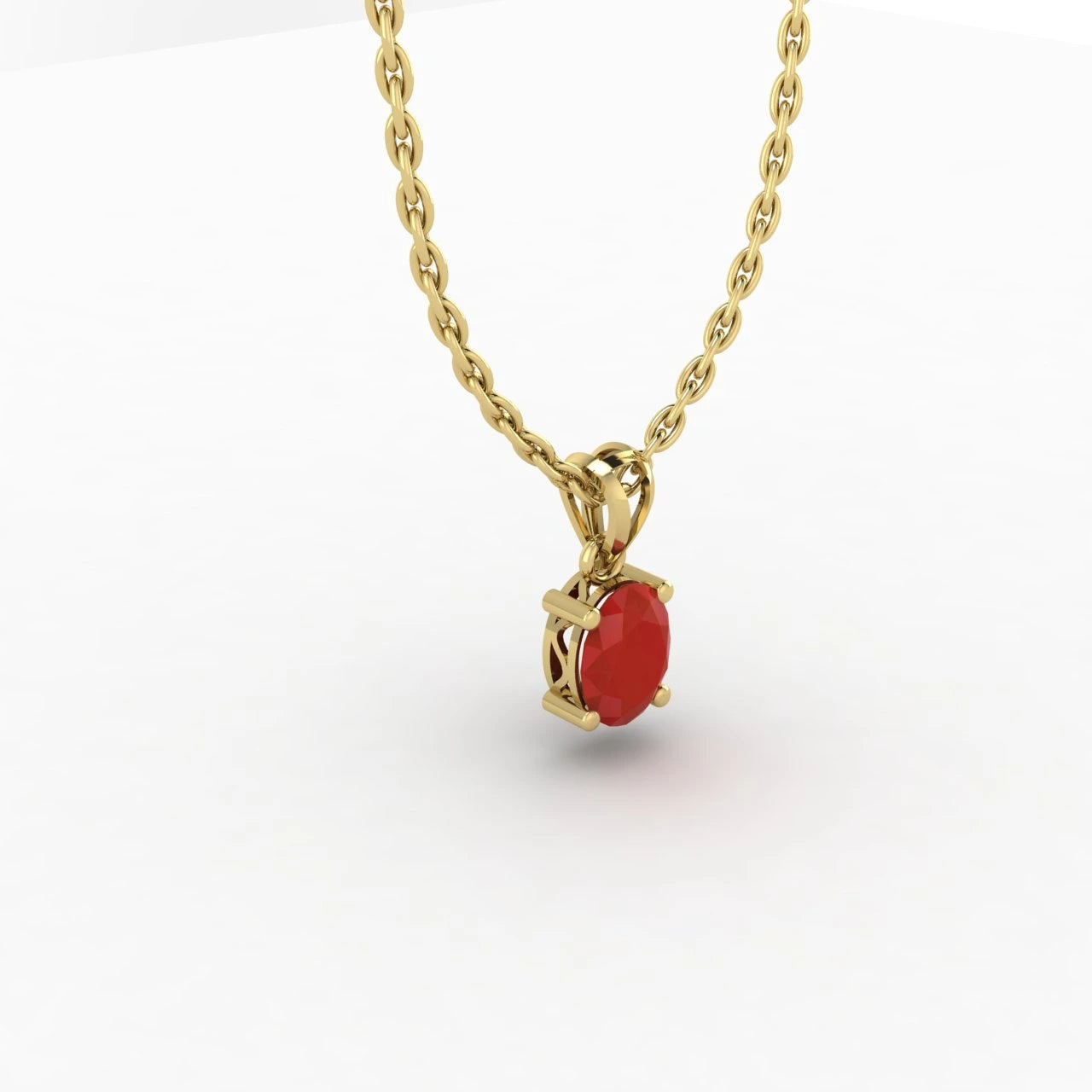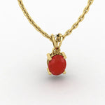 Oval Cut Ruby Solitaire Necklace 14k Yellow Gold