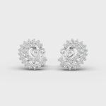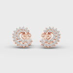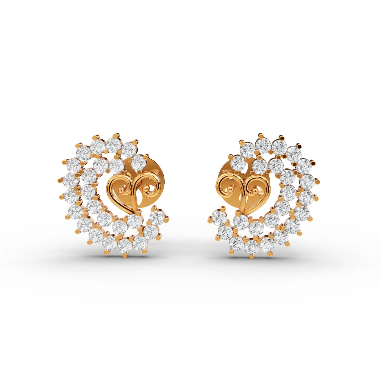 A dazzling pair of spiral earrings, artfully designed to combine luxury with intricate craftsmanship. Each spiral is encrusted with a succession of round-cut diamonds, forming a radiant circular arrangement. The heart-like central motif adds a romantic and timeless touch, blending fluidity with sophistication.