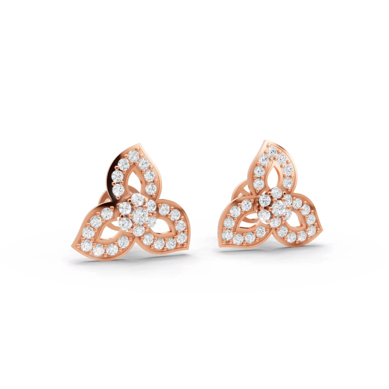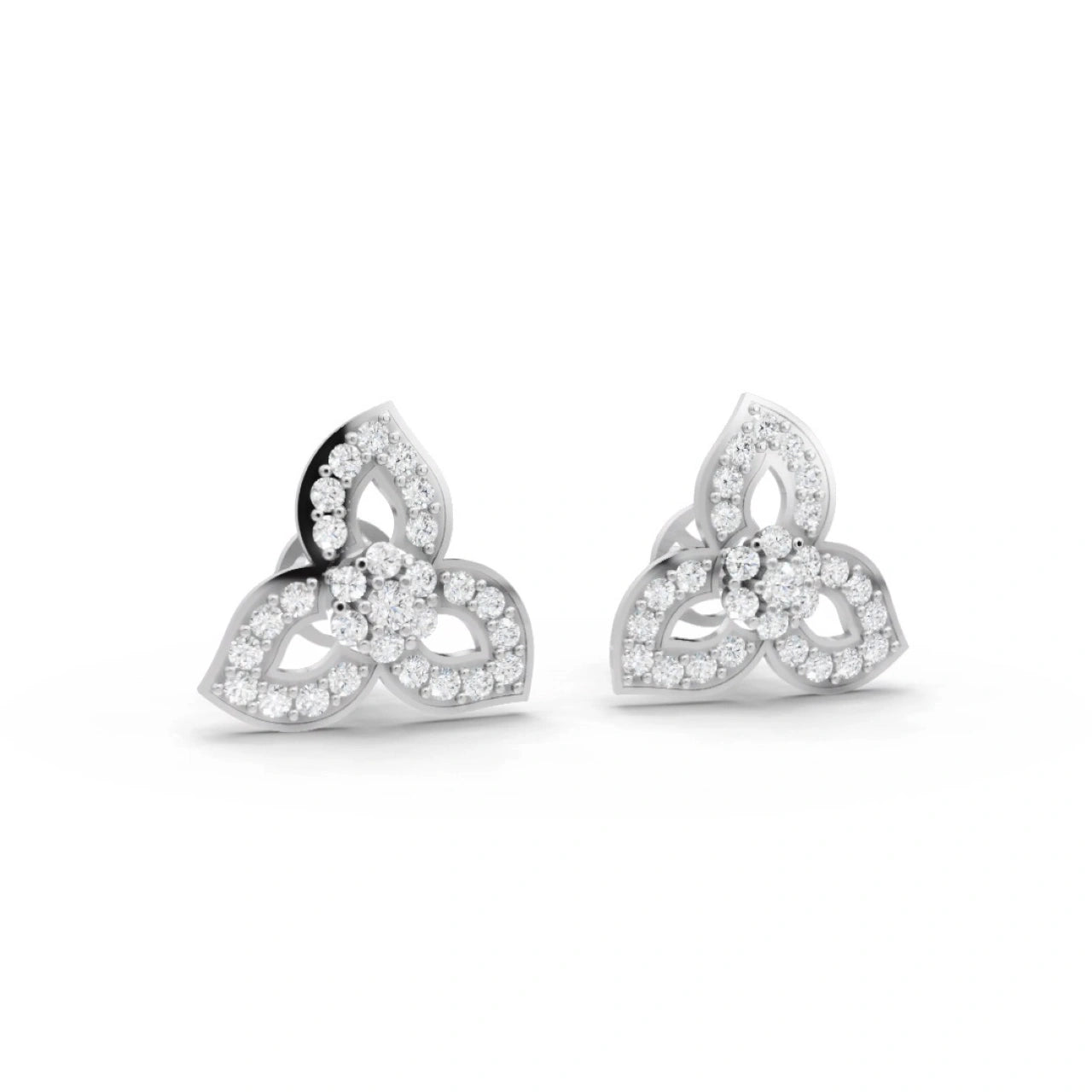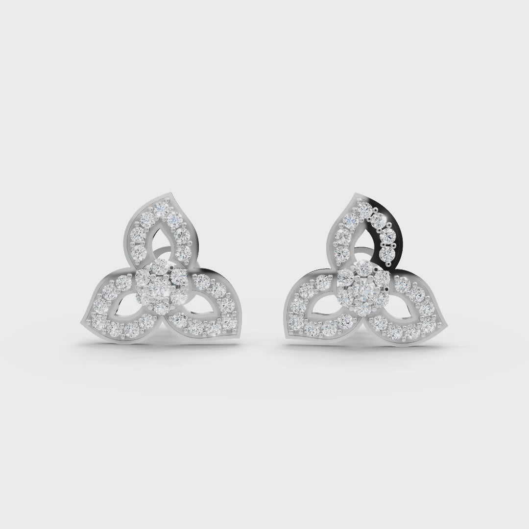 This pair of earrings is a dazzling fusion of elegance and geometry. Each earring resembles a three-petal flower.  Fine diamonds trace the outer edges of each petal, adding sparkle and definition. The minimalist yet intricate design makes them versatile—perfect for both everyday elegance and formal occasions.