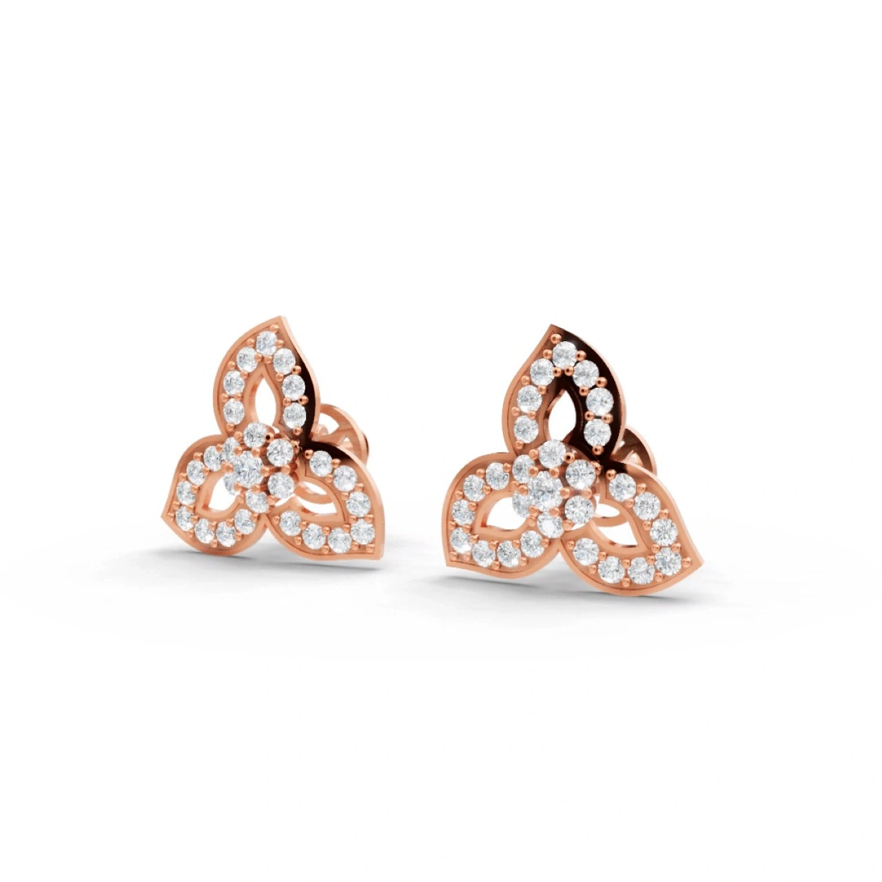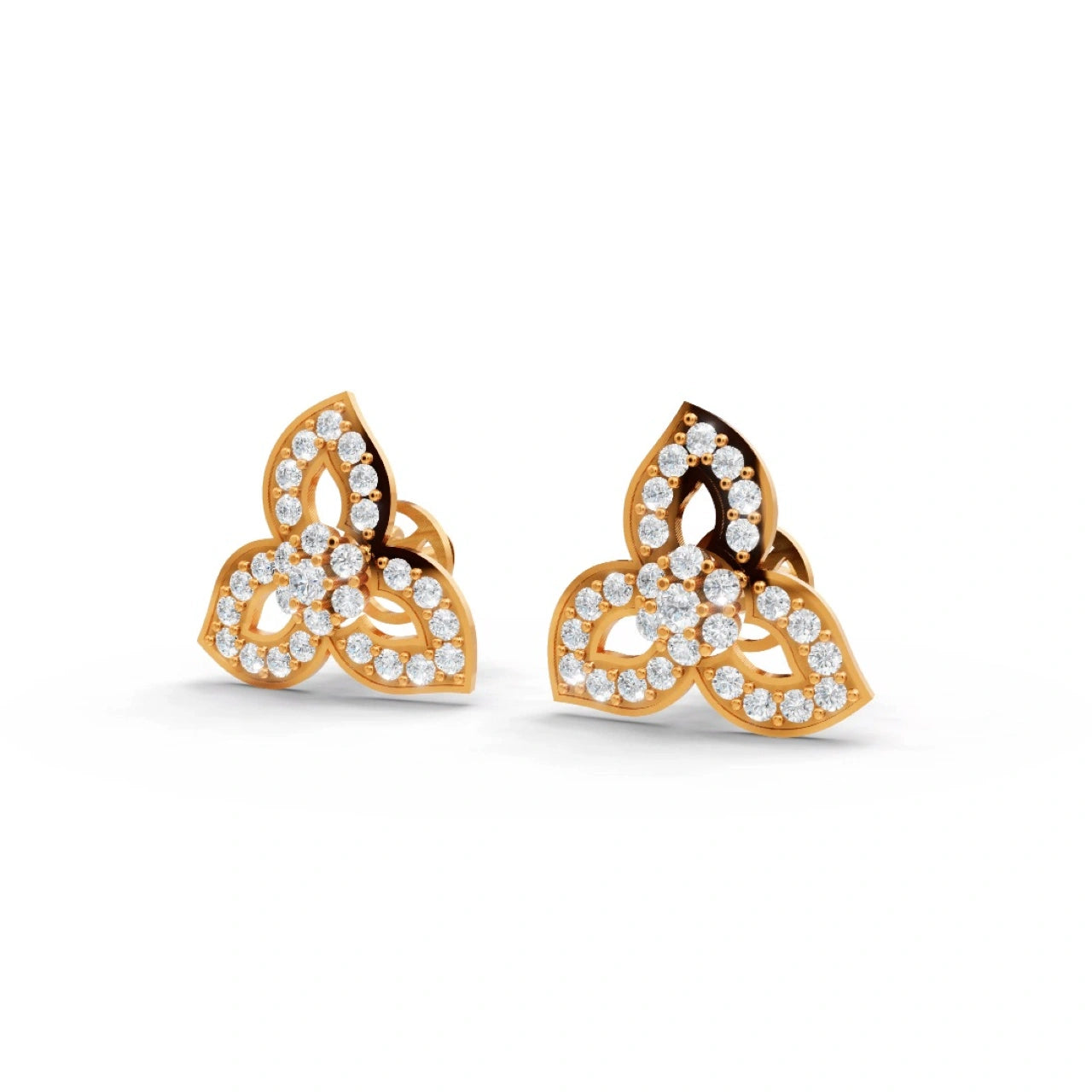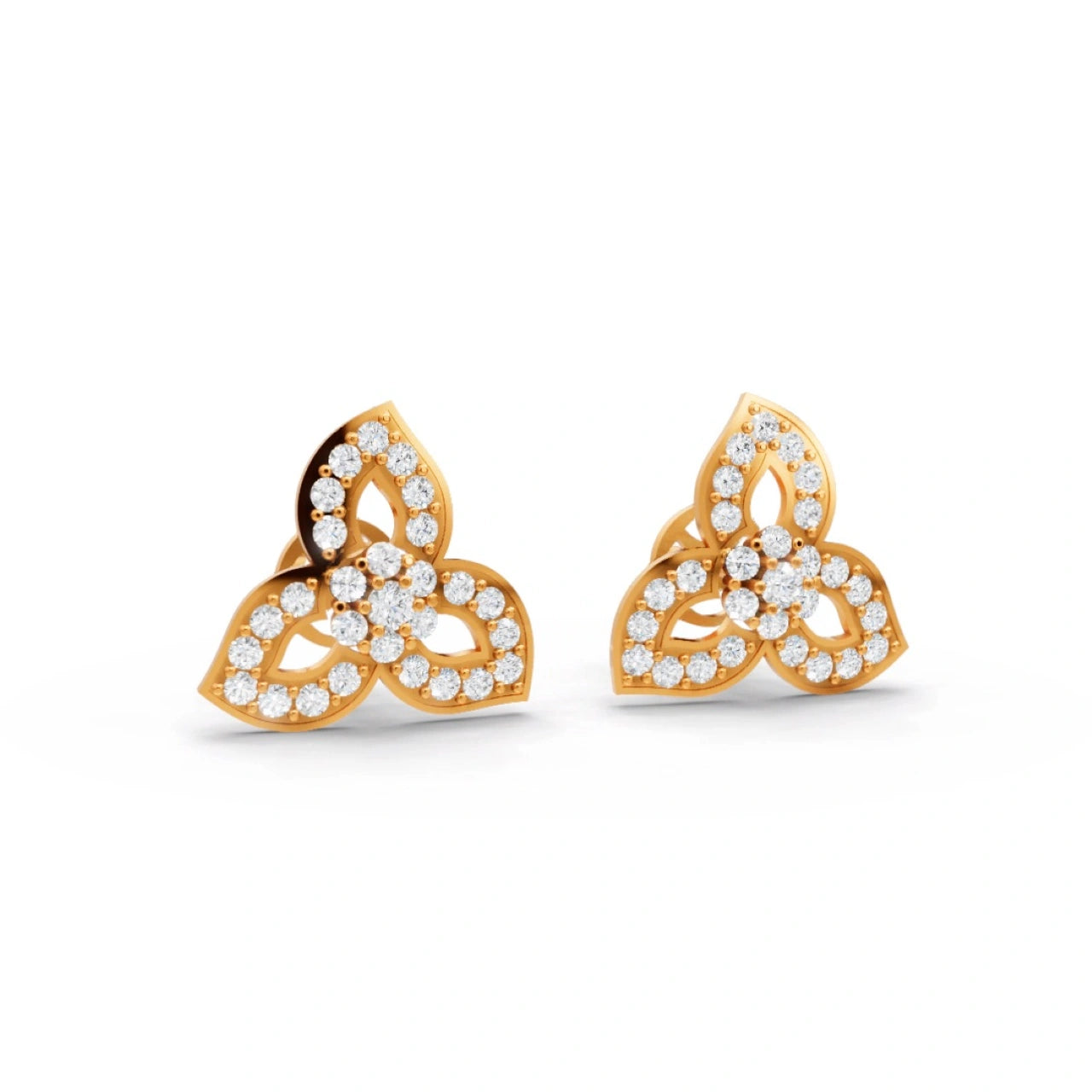 This pair of earrings is a dazzling fusion of elegance and geometry. Each earring resembles a three-petal flower.  Fine diamonds trace the outer edges of each petal, adding sparkle and definition. The minimalist yet intricate design makes them versatile—perfect for both everyday elegance and formal occasions.