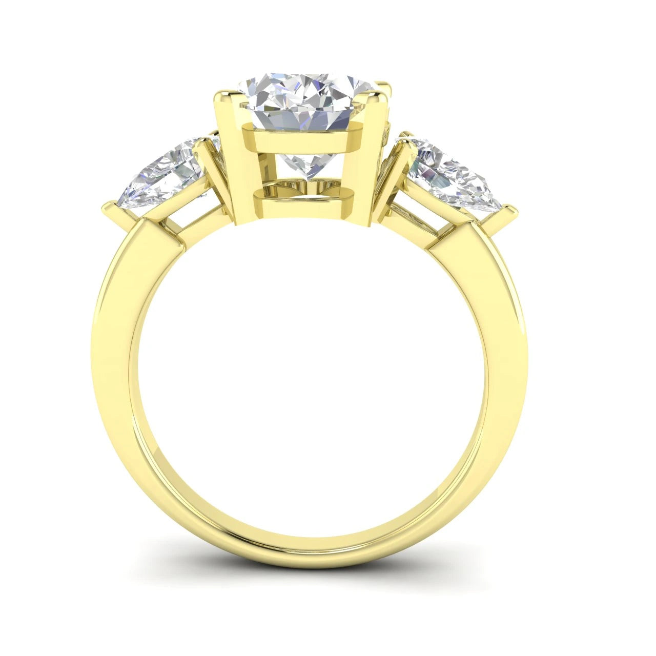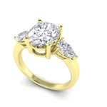 3 Carat IGI Certified Oval & Pear Lab Diamond 18K Yellow Gold Engagement Ring