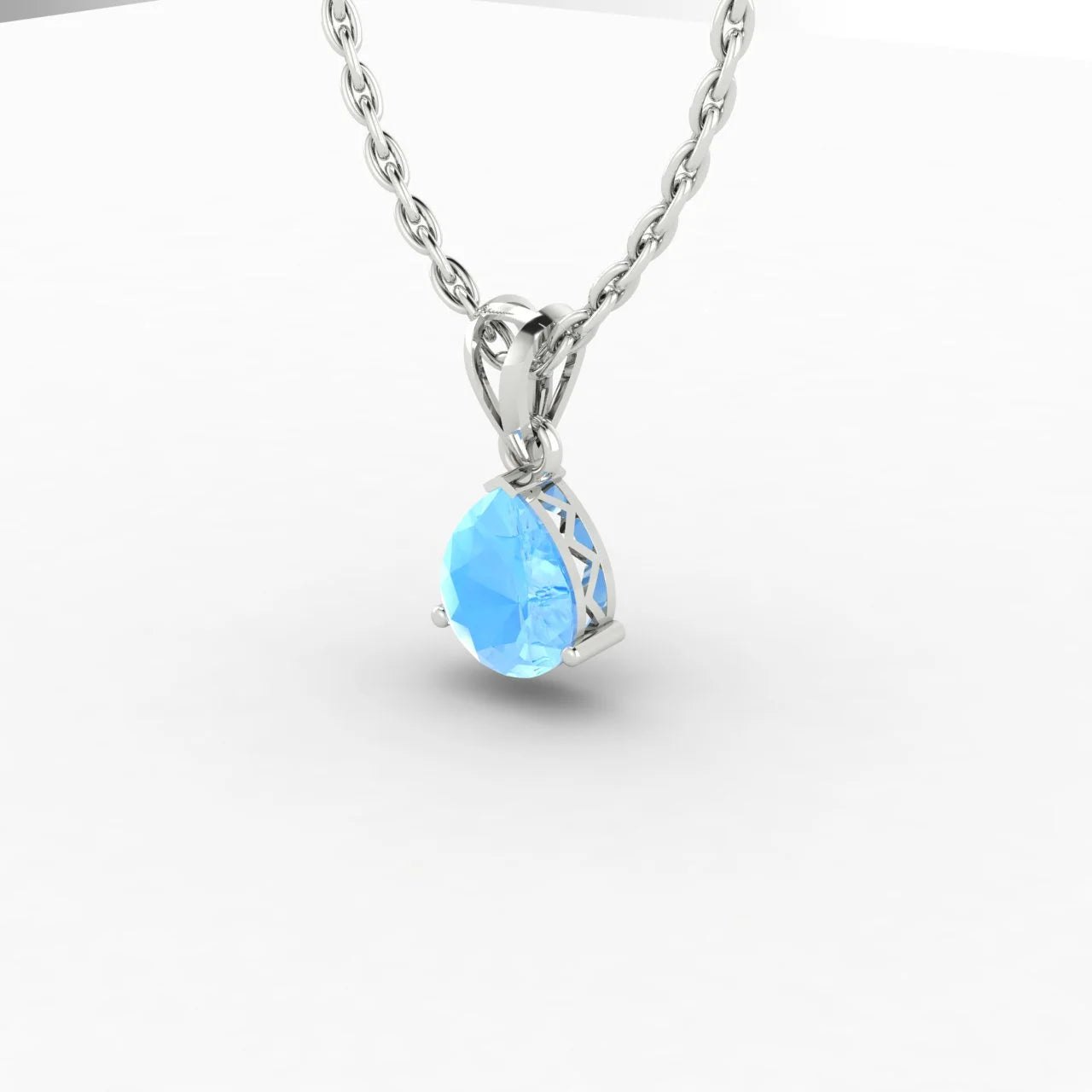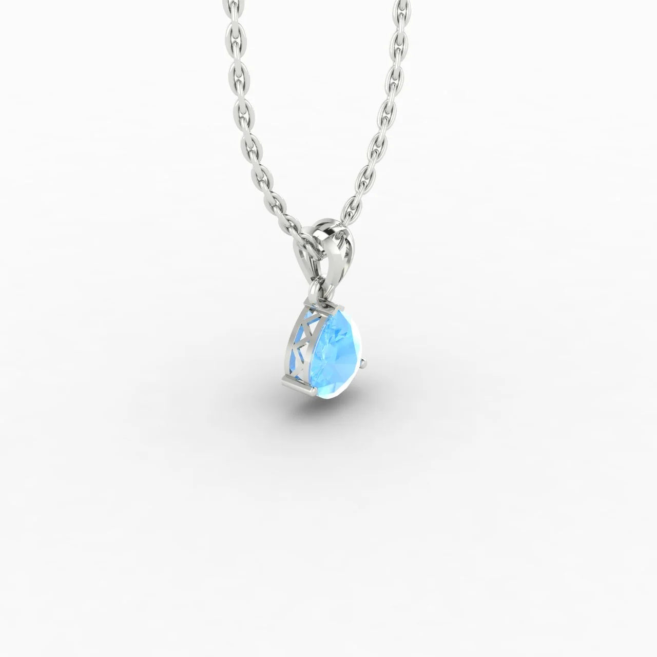 Pear Cut Aquamarine Solitaire Necklace 14k White Gold